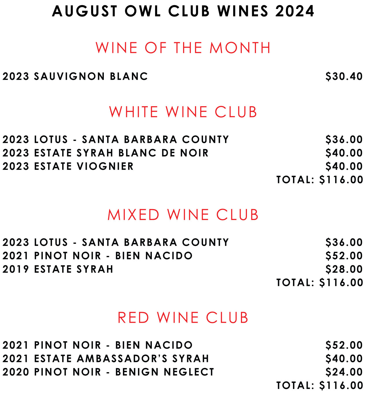 - Your OWL Club wines will be packed up and delivered to your location of choice and an email will be sent out when they are ready to be picked up.